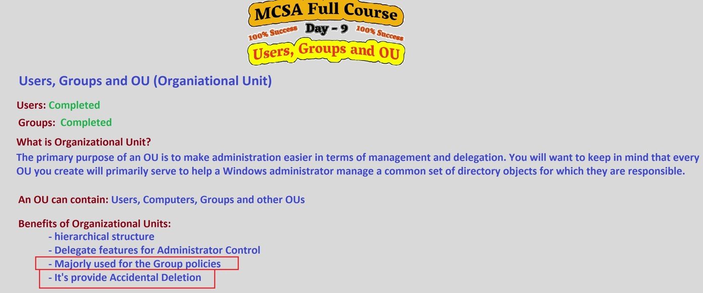 - Delegation: Administrators can delegate specific administrative permissions for an OU. For example, a manager in a specific department can be given control over only the users in their department’s OU without affecting the entire domain.
