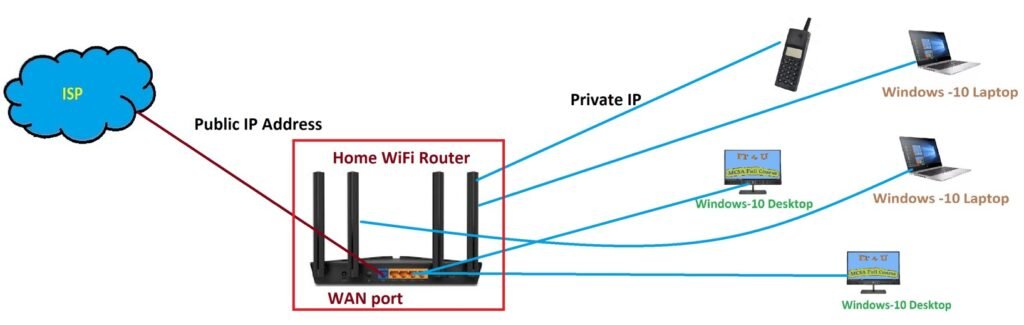 - NAT translates this into multiple private IPs for your laptop, phone, and smart TV.