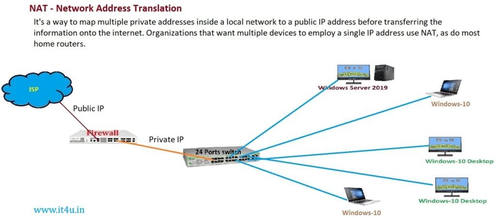 This is where Network Address Translation (NAT) comes in. NAT allows multiple private IP addresses inside a local network to access the internet through a single public IP. It not only saves IP addresses but also adds a layer of security by masking internal systems.